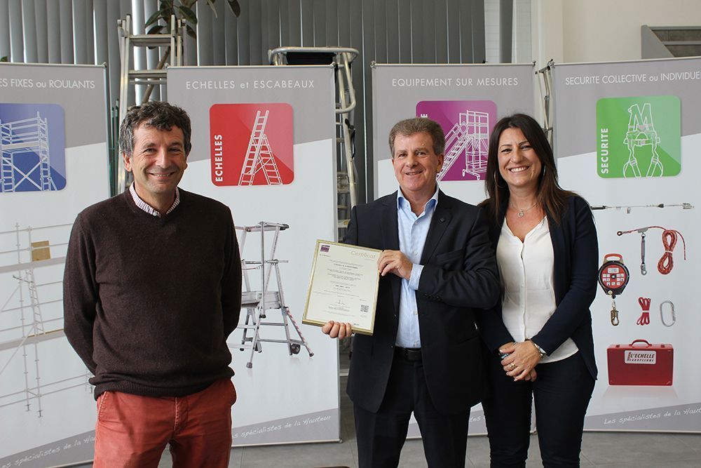 Décernée par l’AFNOR lors d’un Audit externe en septembre 2019, la certification couvre le siège social de Saint Jean de Védas (34) et ses activités de conception et de fabrication de solutions d’accès et de travail en hauteur, le négoce et la livraison de marchandises, et la gestion et l’animation du réseau de magasins L’Echelle Européenne. Elle témoigne de l’engagement du Groupe dans l’amélioration continue de la qualité des produits et services, afin de garantir la satisfaction de ses clients.