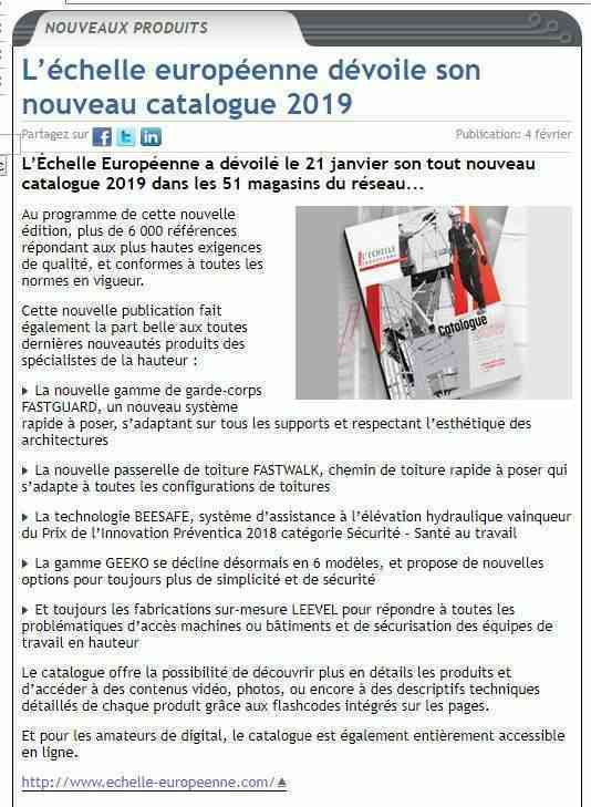 INDUSTRIE MAG - 4 février 2019 - L'Echelle Européenne dévoile son catalogue 2019