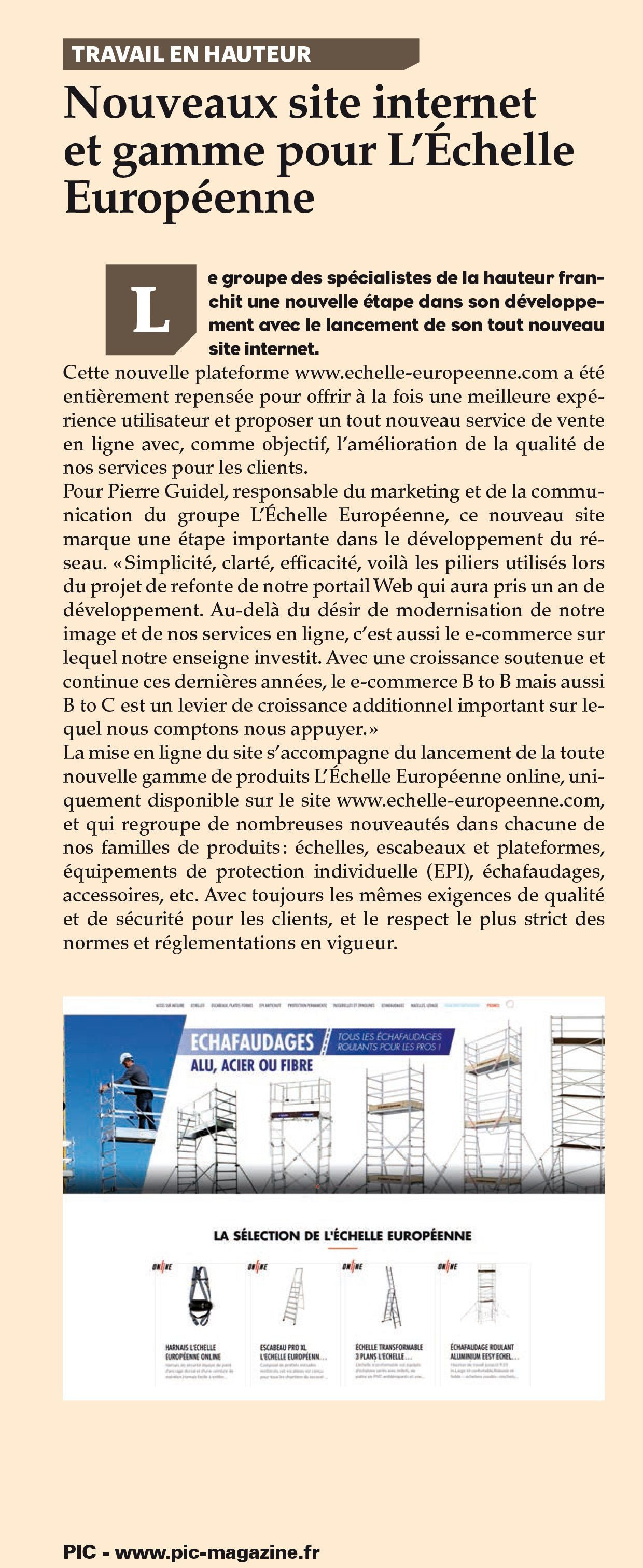 PIC MAGAZINE - OCTOBRE 2019 - Nouveaux site internet et gamme pour L'Echelle Européenne
