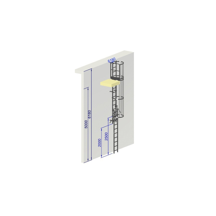 Échelle à crinoline hauteur 5000 mm sortie latérale EN ISO 14122-4