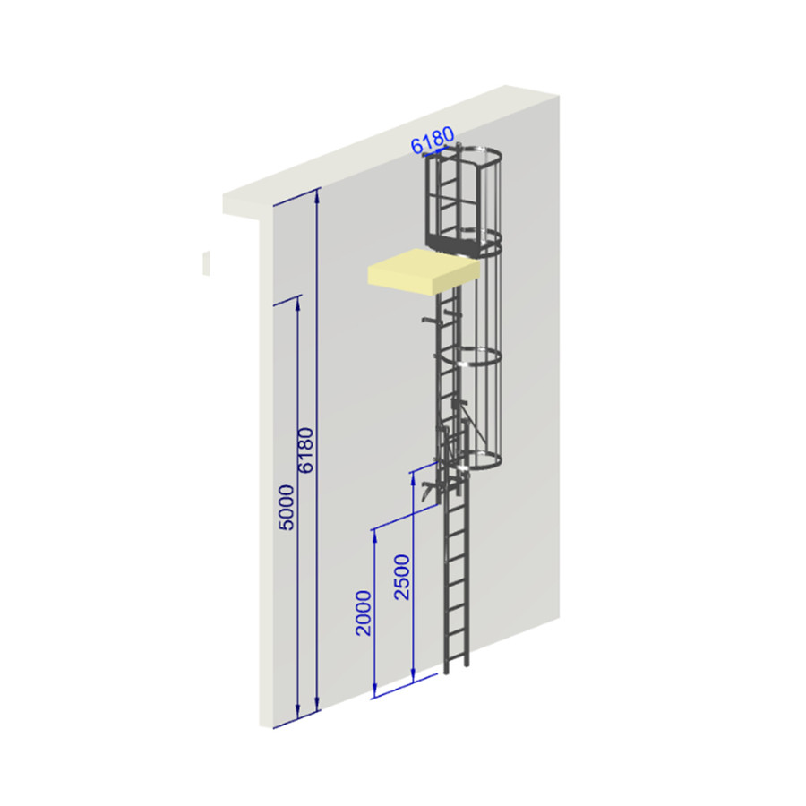 Découvrez notre échelle à crinoline, conçue entièrement en aluminium, permettant d'atteindre une hauteur de 5000 mm. Configuration conçue pour les sorties latérales sur plate-formes existantes.