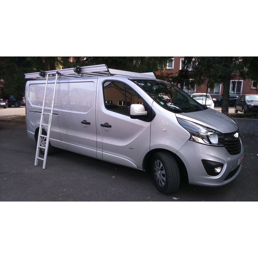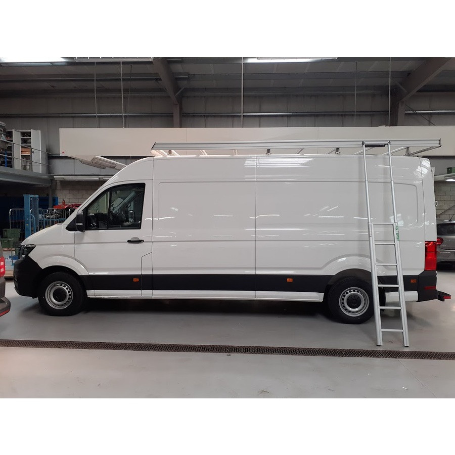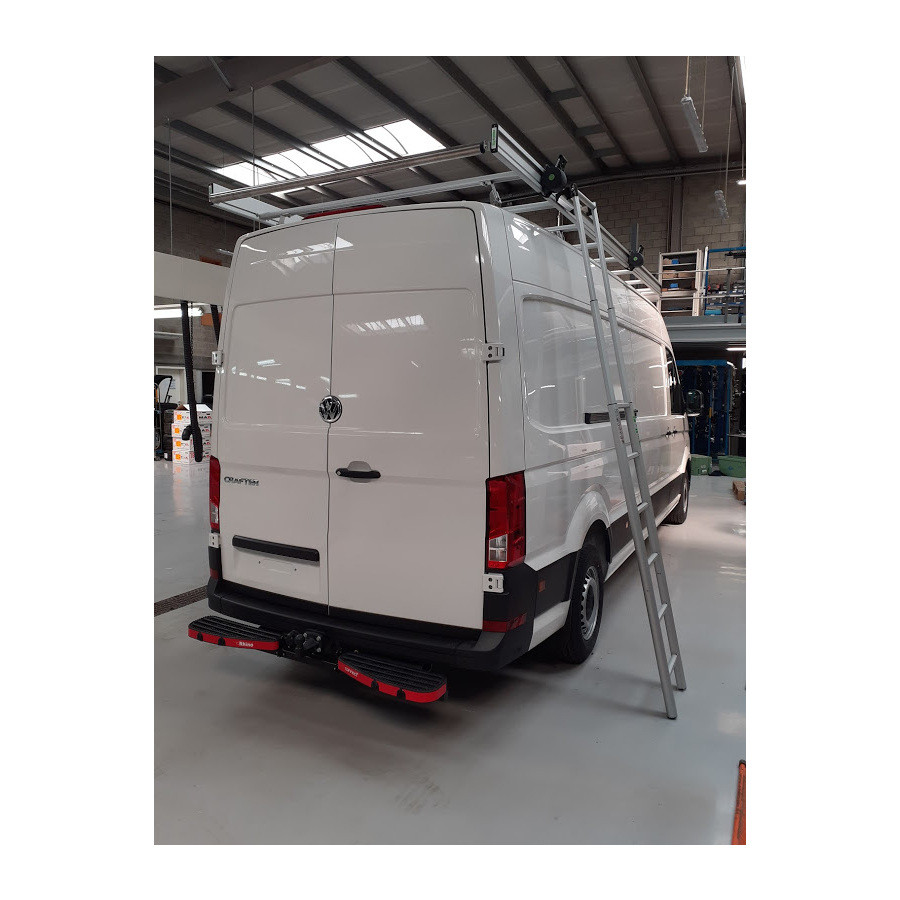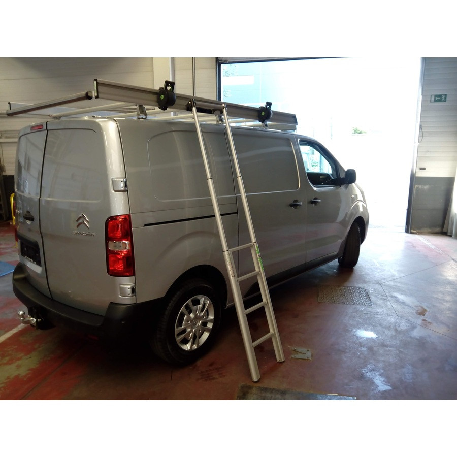L'échelle télescopique pour galerie d'utilitaire a été concue pour accéder latéralement au toit du véhicule, évitant à l'utilisateur de devoir monter sur la camionnette pour y fixer un objet à transporter.