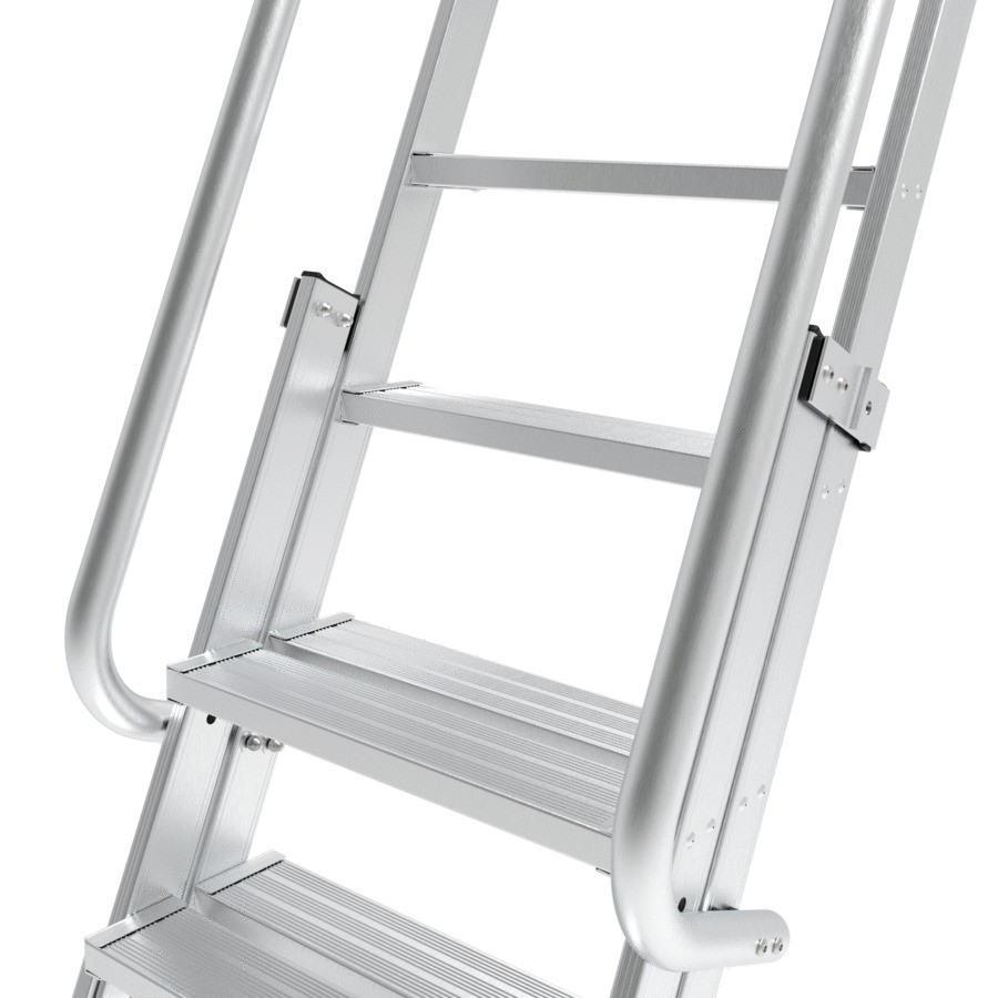 Cette échelle en aluminium permet la descente dans les fouilles allant de 1 à 4,75m. Ses marches de 80 mm, ses rampes d'accès ses patins pivotants et sa sortie frontale garantissent à l'utilisateur une parfaite sécurité. Cette échelle a été rendue en 2021 ultra pratique grâce à son système télescopique, ses pieds réglables, ses anneaux de grutage et ses roues de déplacement.