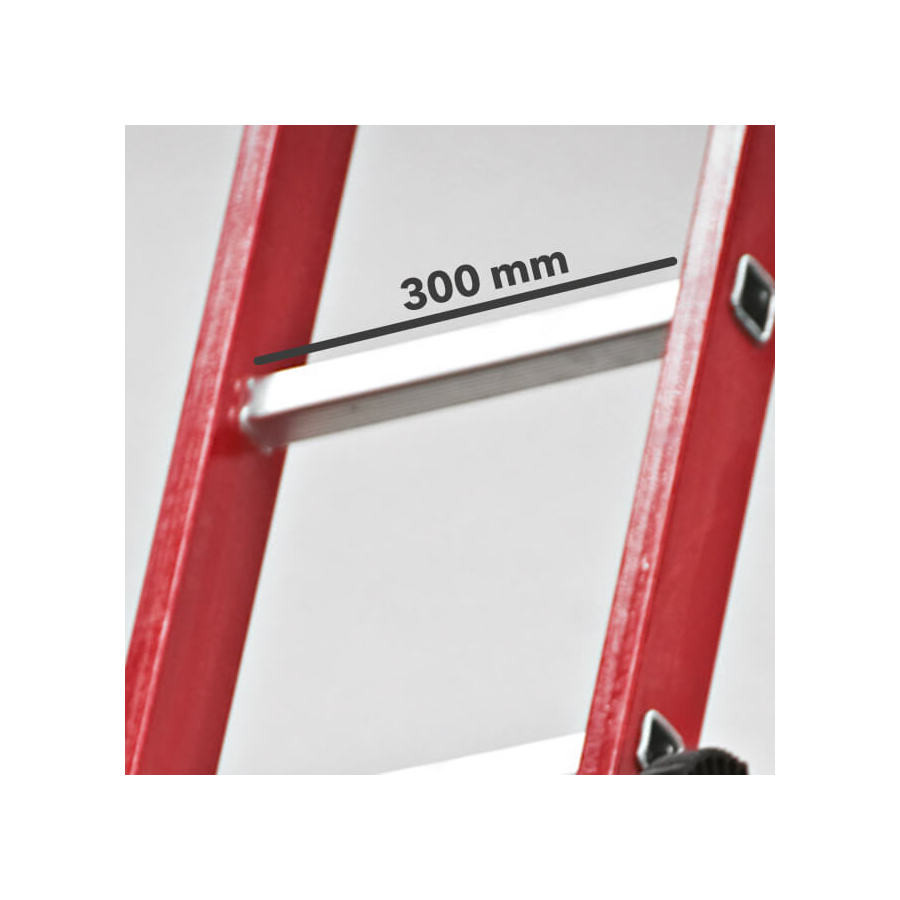 Échelons antidérapant confortable de 30x30 mm et largeur intérieure de léchelle de 300 mm.