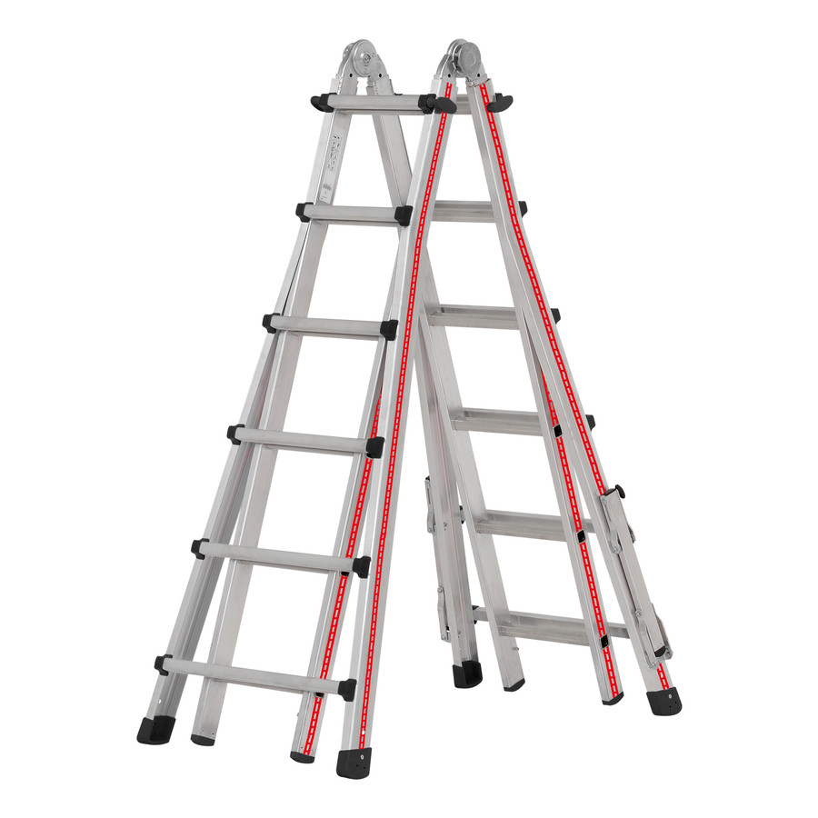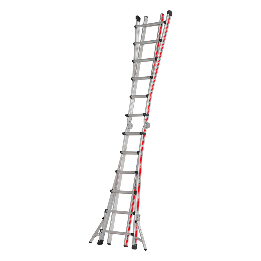 Modulable, l'échelle s'adapte à de nombreuses situations de travail (échelle simple, échelle déployée, échelle double, échelle double en dénivelé).