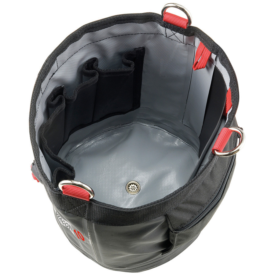 Deux versions disponibles : 10 et 20L avec deux poignées pour la suspension pour le 20L. Deux poches extérieures, dont l'une est équipée d'un mousqueton porte-matériel à l'intérieur, utile pour attacher une sangle de sécurité Tooler (fournie séparément).