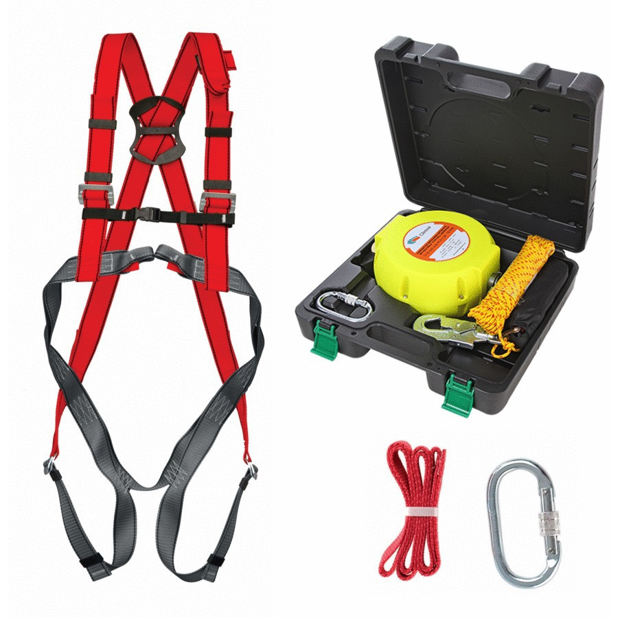 Kit antichute dédié aux intervenants travaillant sur échafaudages, poteaux électriques, contre façades...Composition :- Harnais 2 points SECUREE- Enrouleur à sangle Enrolex longueur 2,25 m, avec mousq...