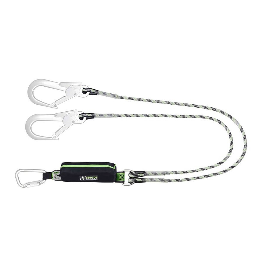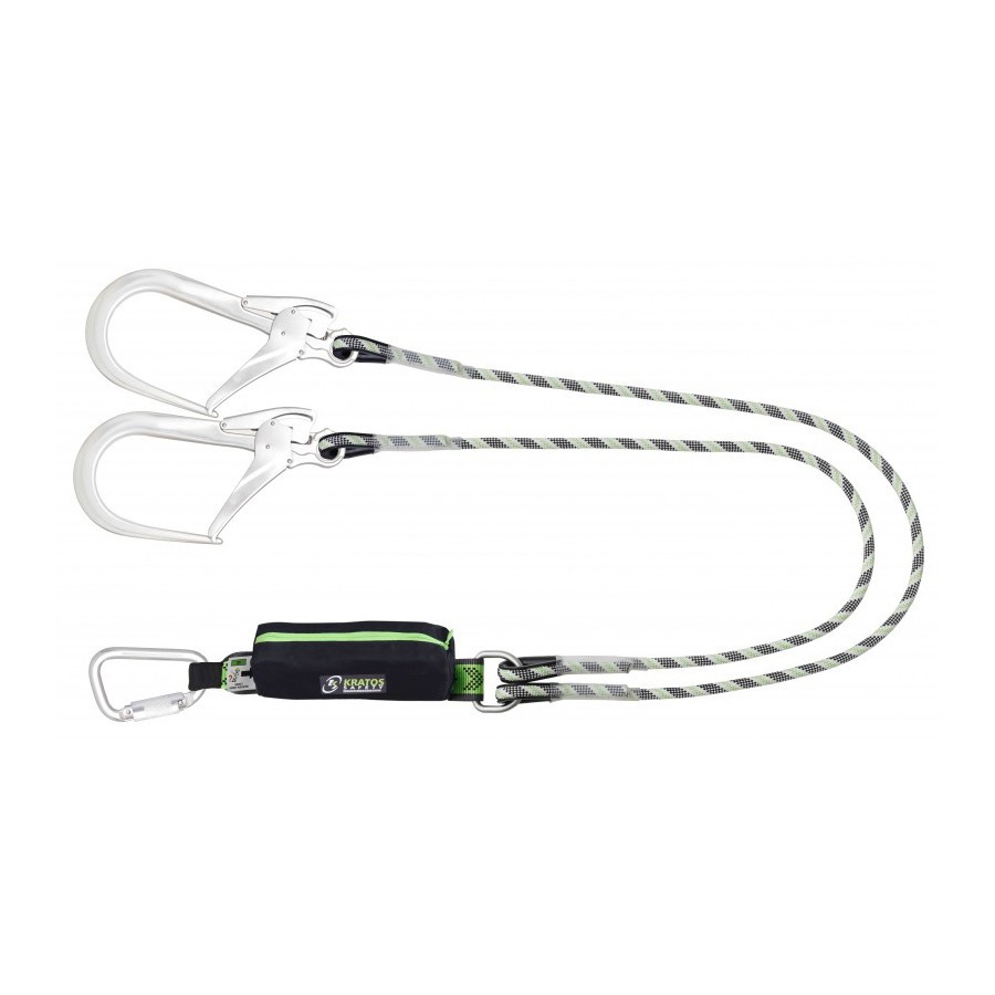Longes doubles avec absorbeur d'énergie dans pochette zippée, corde tressée anti-abrasion et connecteurs aluminium.