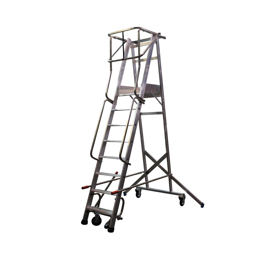 Plate-forme de travail sécurisée conçue pour le picking et les accès sur des zones de stockage et de rayonnage. Disponible de 3 à 15 marches pour tous les types de rayonnages de 2,75 à 5,75 m de hauteur de travail.