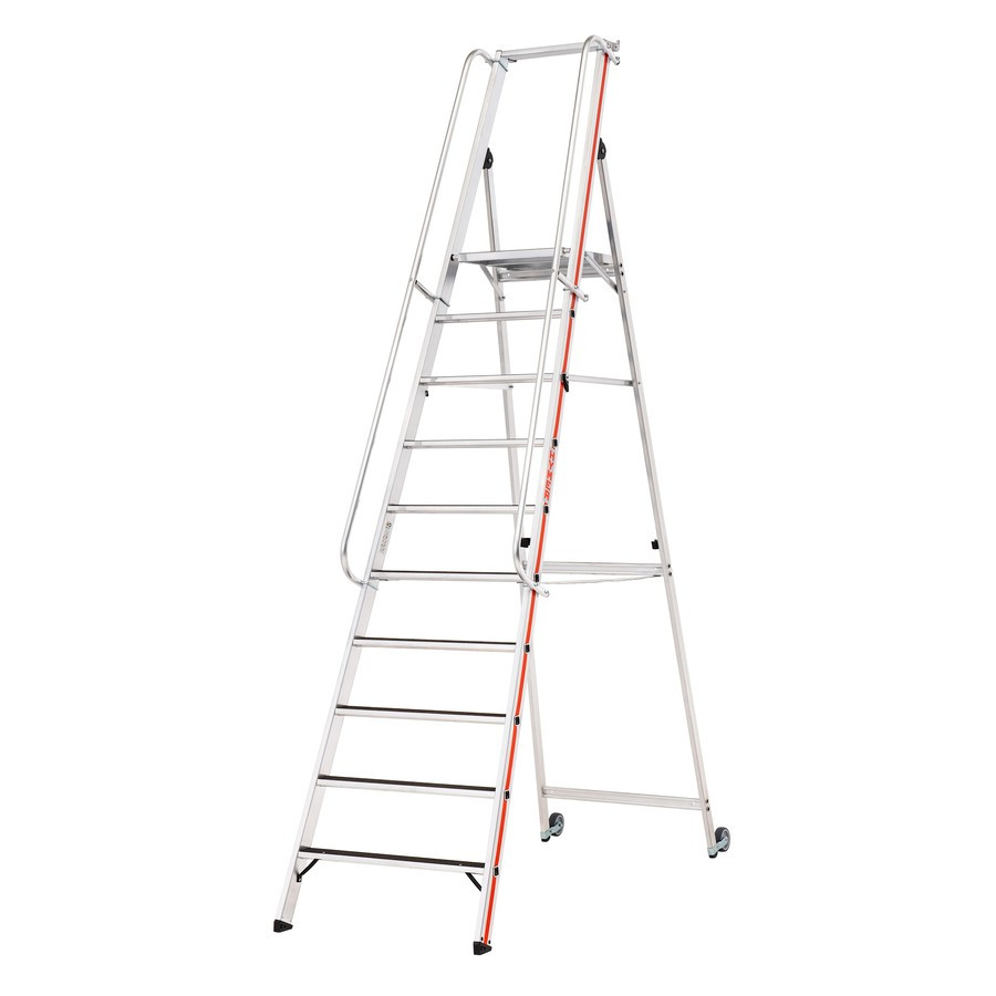 Echelle à plate-forme 9 marches r13 avec roulettes et longue main-courante | |