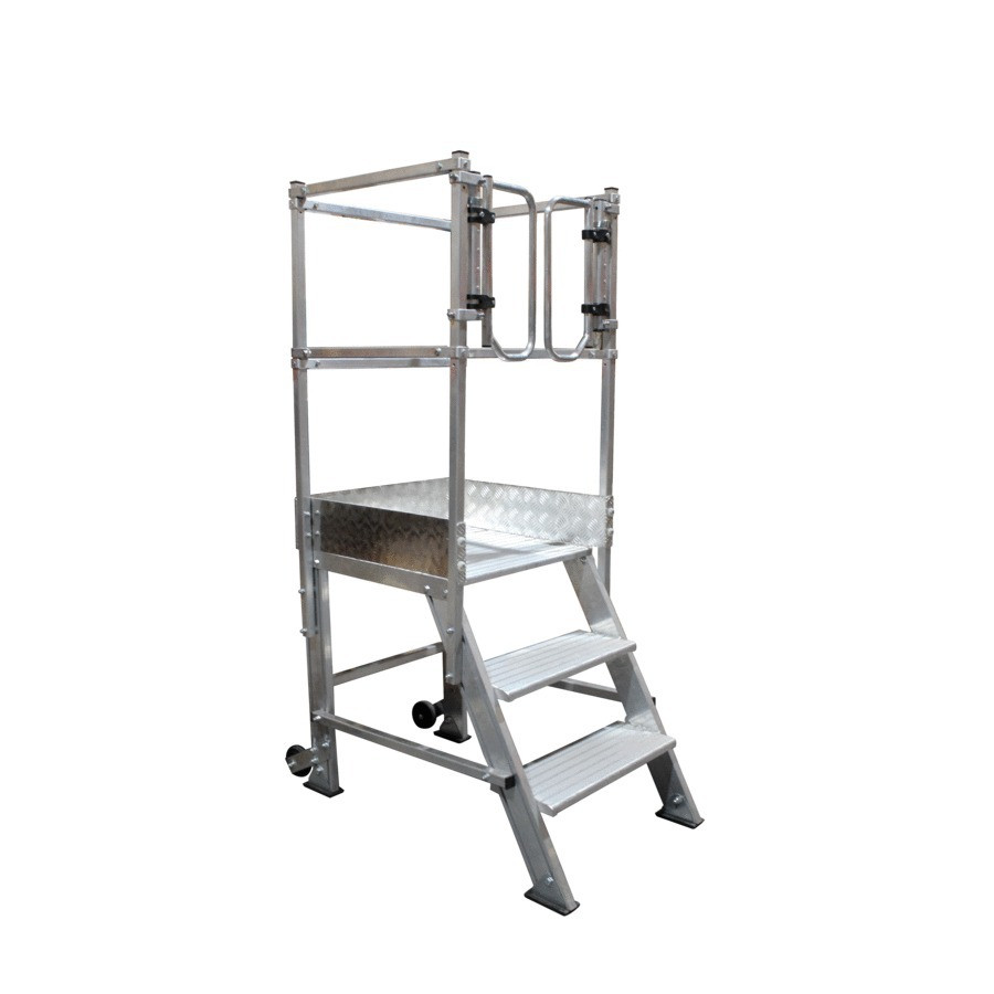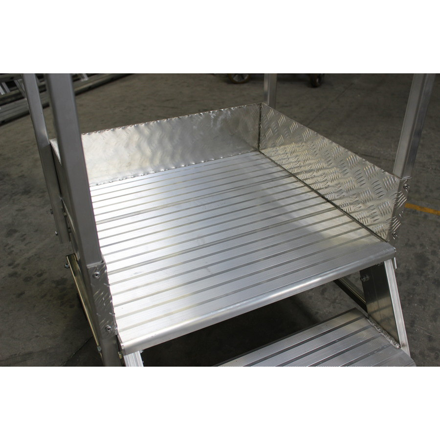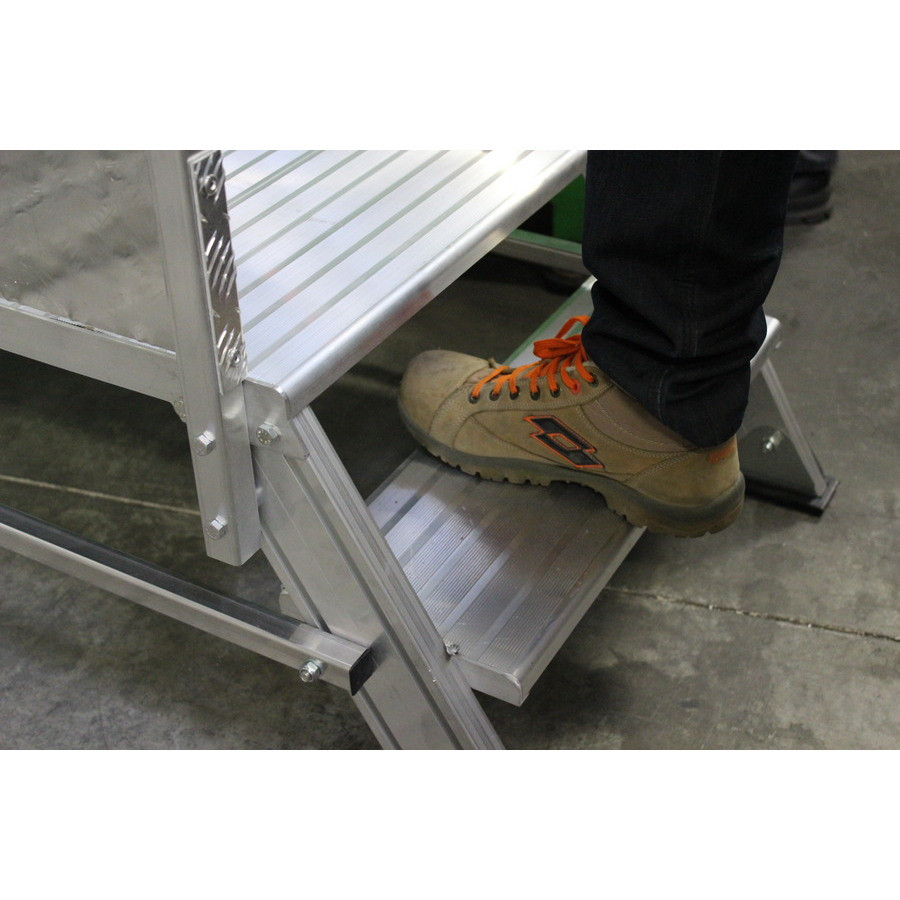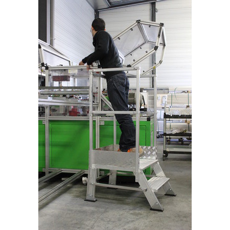 Marchepied double accès en aluminium pour l'entretien et la maitenance.Structure robuste en aluminium.Existe du 2 à 4 marches.Equipement pourvant être muni de garde-corps et de roues escamotables.