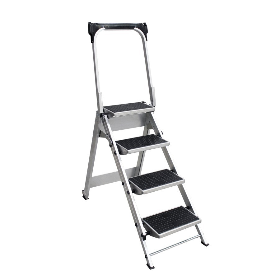 Marchepied pliant en aluminium 4 marches avec roues escamotables prémontées | |
