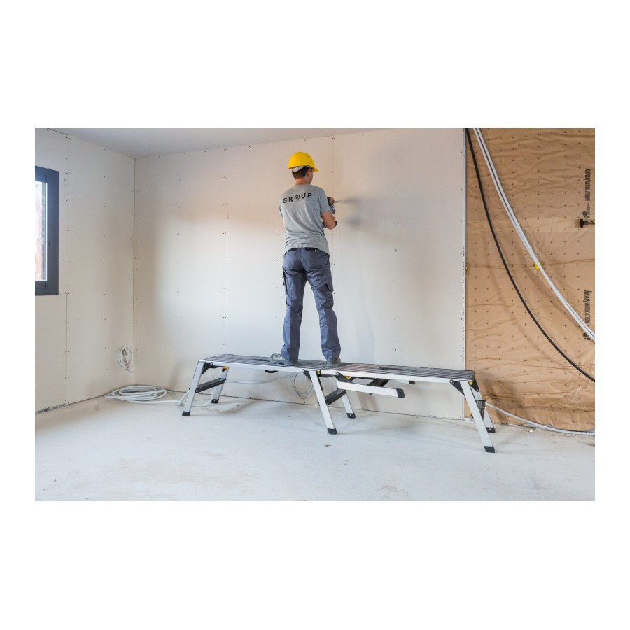 Le marchepied idéal pour les plâtriers grâce à sa grande plate-forme.