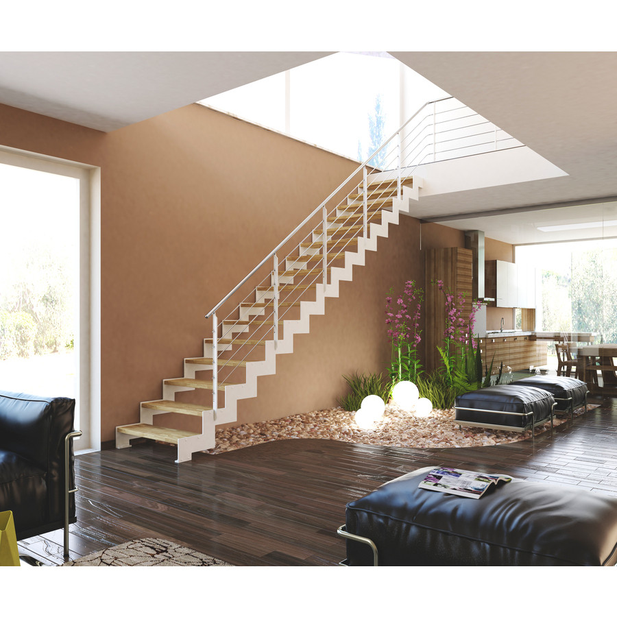 Escalier sur poutre centrale en acier très moderne apporte un plus grand confort grâce à un giron supérieur.