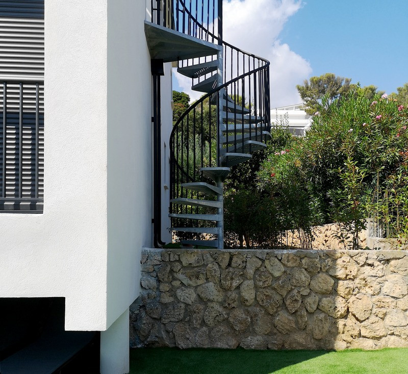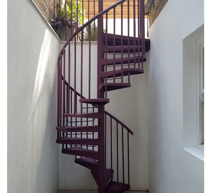 Escalier hélicoidal en acier pour équiper l'extérieur d'une maison.Fonctionnel et solide, l'escalier Camelia vous offre un excellent compromis entre esthétique et praticité.