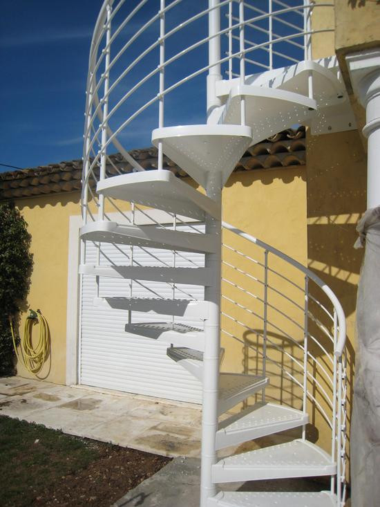 Escalier hélicoidal en acier pour équiper l'extérieur d'une maison.Fonctionnel et solide, l'escalier Camelia vous offre un excellent compromis entre esthétique et praticité.