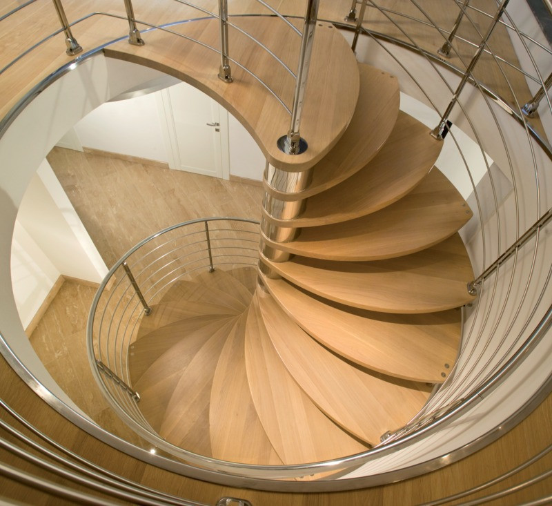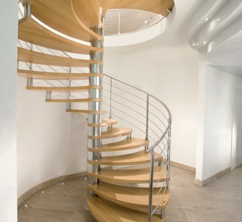 Avec sa rampe de 5 à 8 lisses en acier inox, l'escalier HELICE offre l'élégance d'un modèle raffiné.