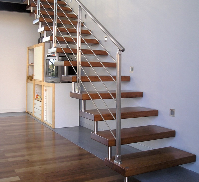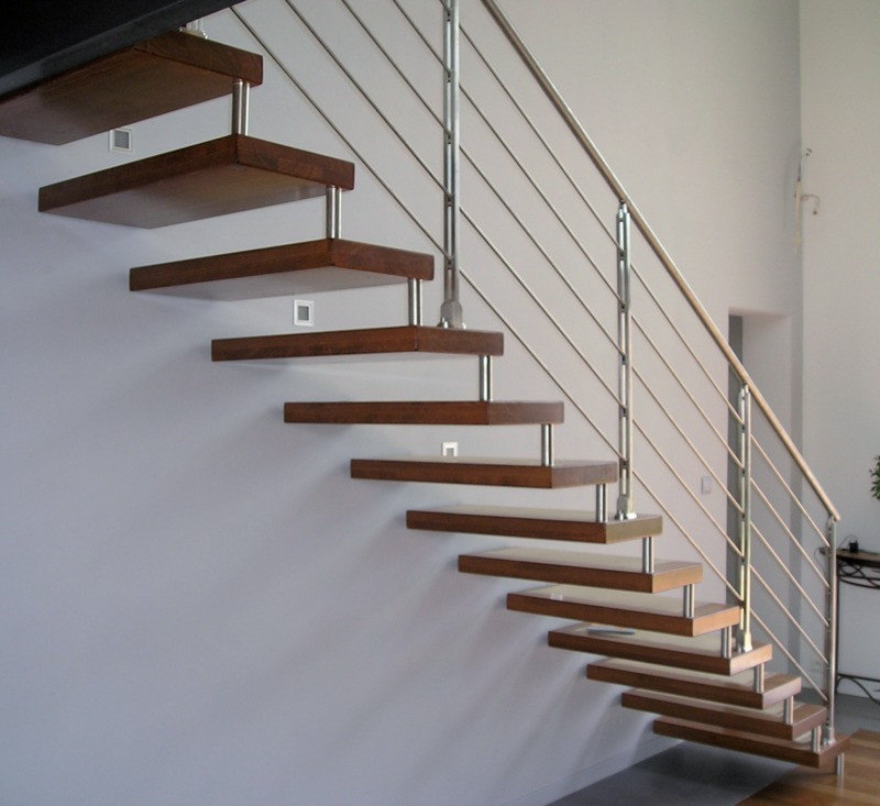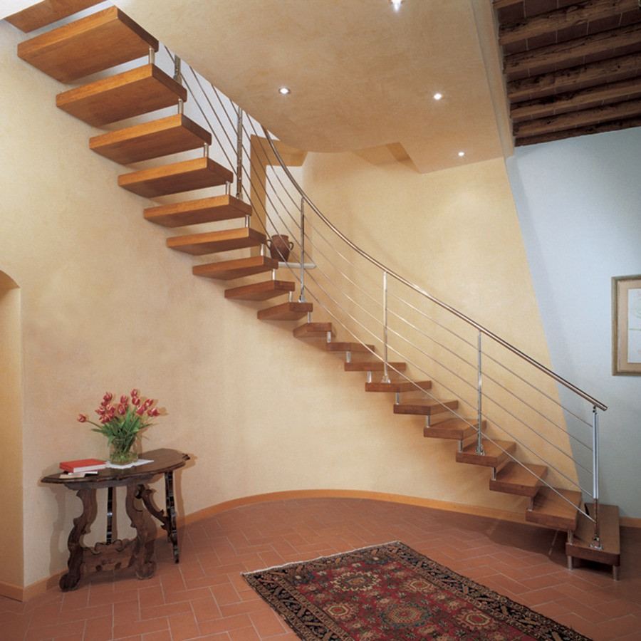 Cet escalier suspendu est en bois apporte lumière et espace à tout type d'intérieur.