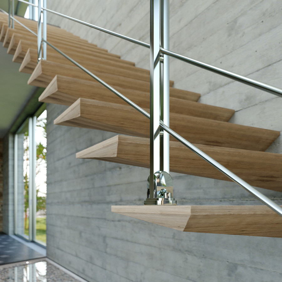 Cet escalier suspendu est en bois apportelumière et espace à tout type d'intérieur.