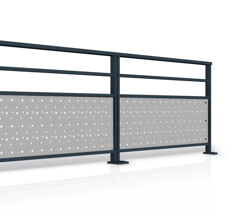 Avec sa pose simple et rapide, le garde-corps AMELITE est réalisé avec une main courante rectangulaire et une lisse intermédiaire.