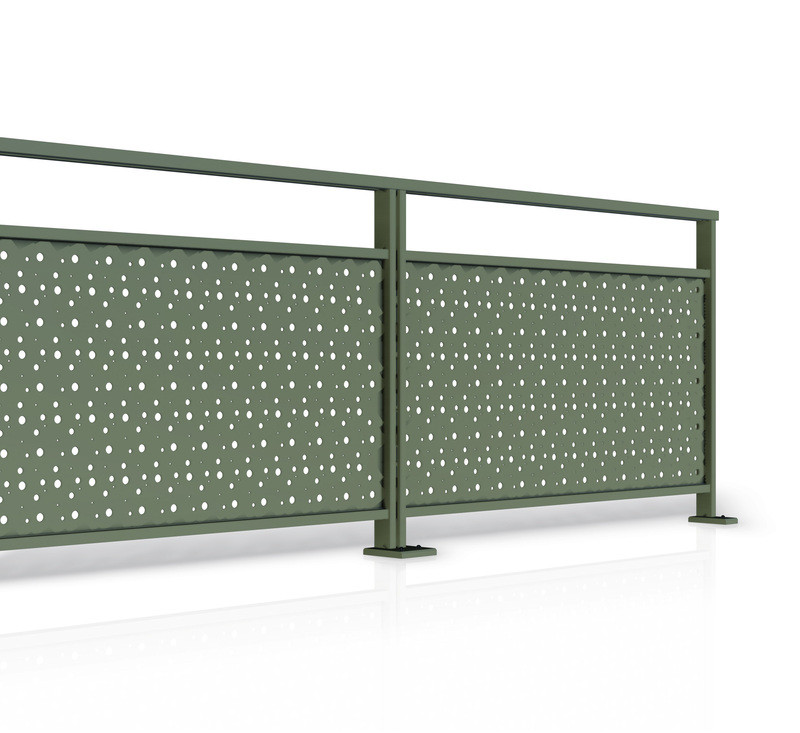 Garde-corps avec remplissage de tôle en aluminium et d'un choix de motifs à définir.