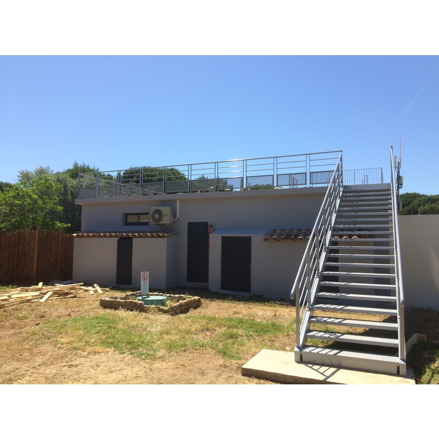 Cet escalier droit extérieur industriel est conçu en acier galvanisé pour résister aux agressions extérieures sur du long terme.