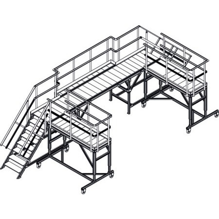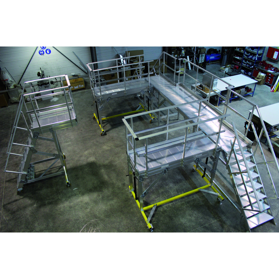 Équipement composé de 2 passerelles réglables manuellement, d'une passerelle d'accès et d'une plate-forme roulante avec déport