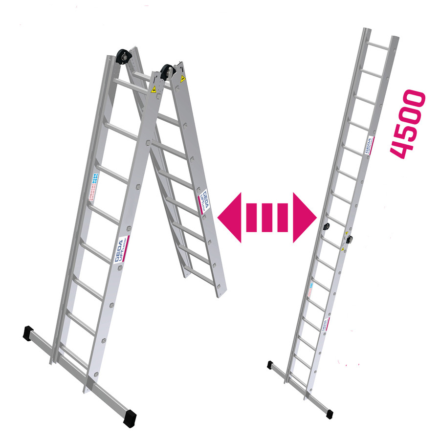 De 0 à 4,50 m : 1 Échelle Double Longueur 4500 mm