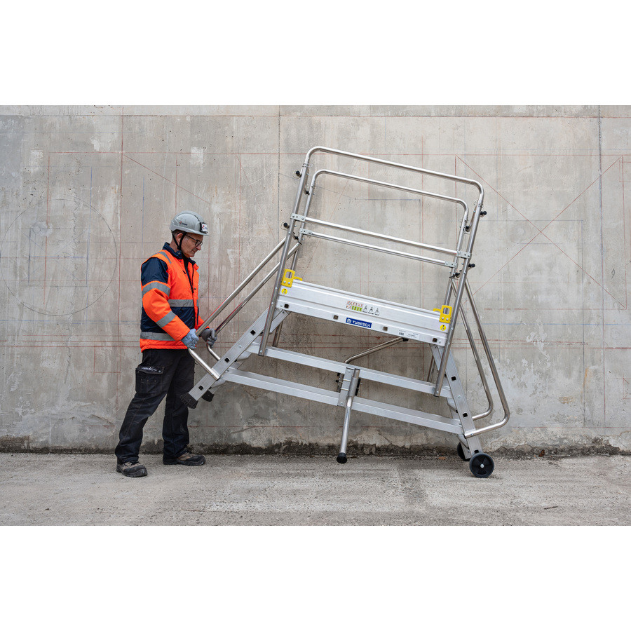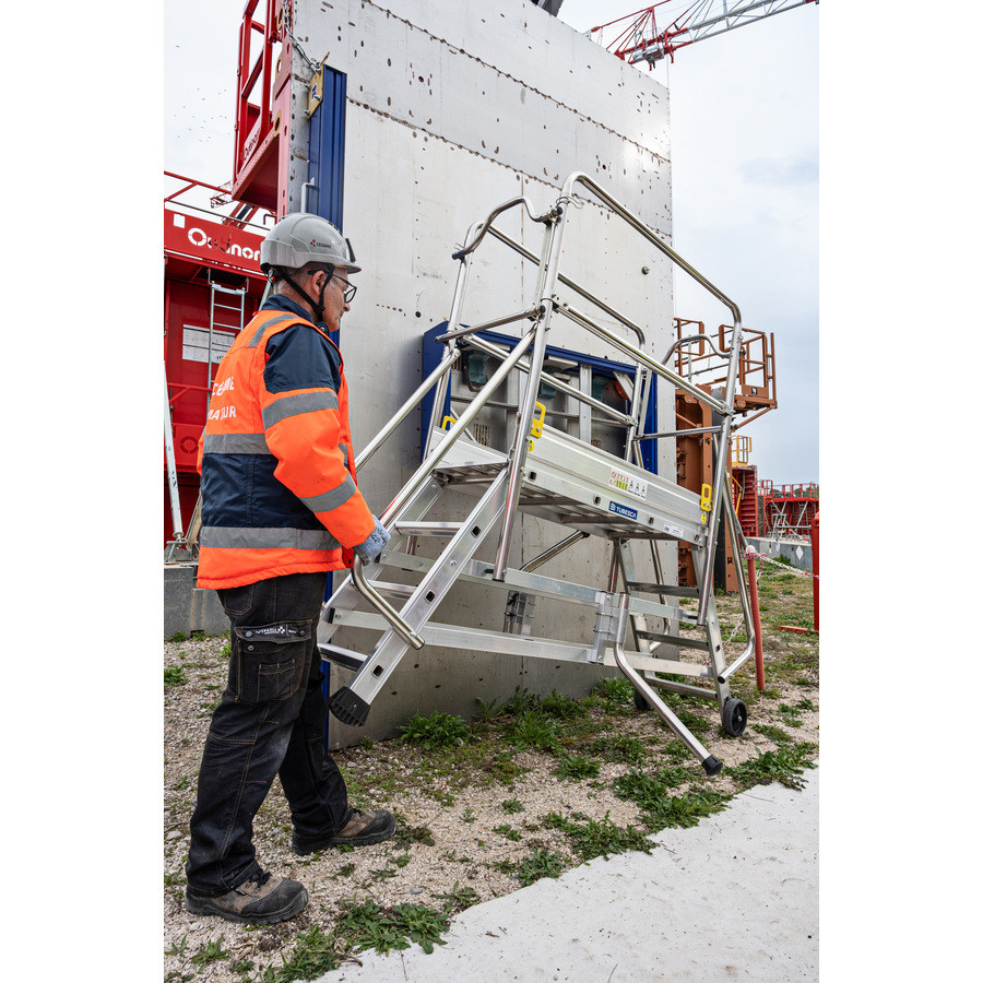 Marches alu striées antidérapantes (largeur : 100 mm).