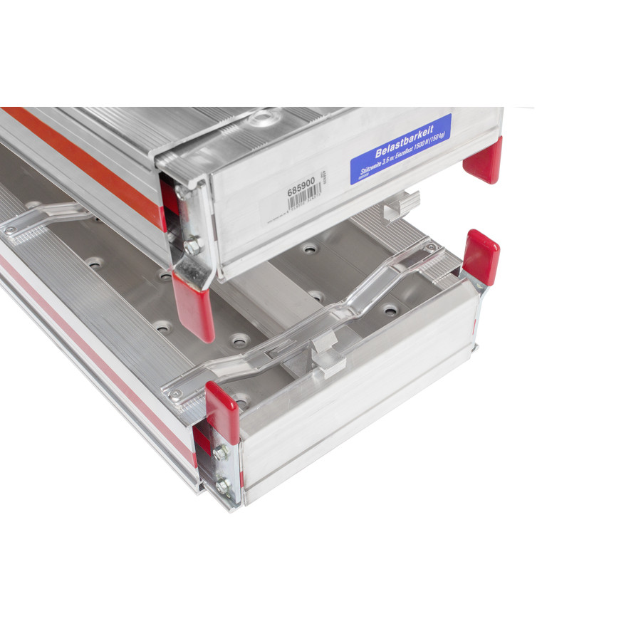 En position montée ou de transport, les éléments du montant s'enclenchent automatiquement.Facile à transporter grâce à la poignée creuse dans le revêtement de la plate-forme.Mise en place simple et ra...