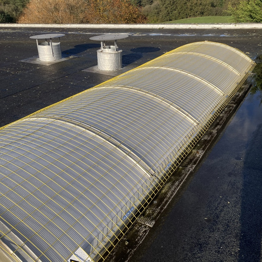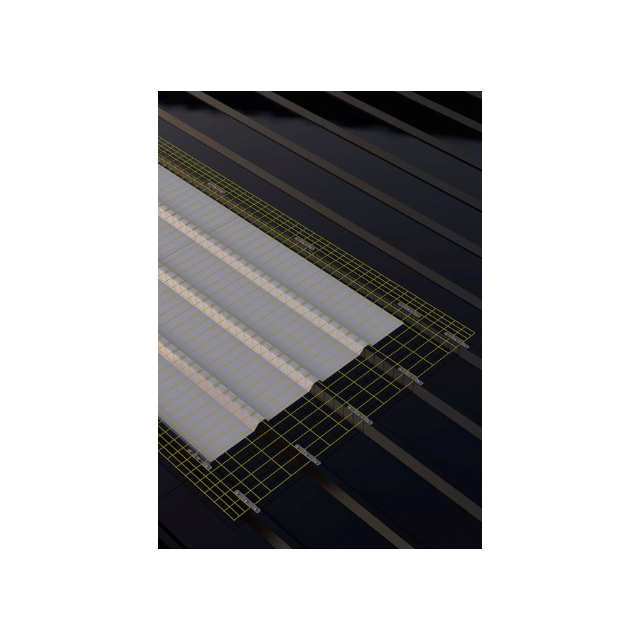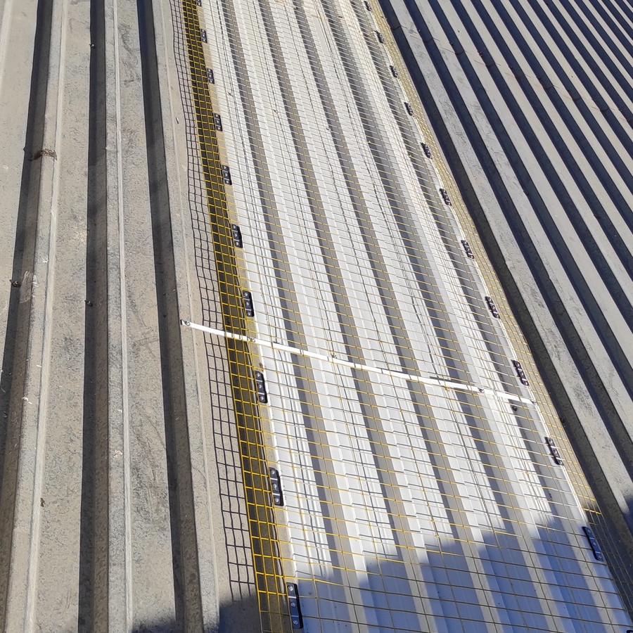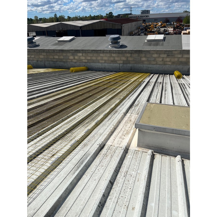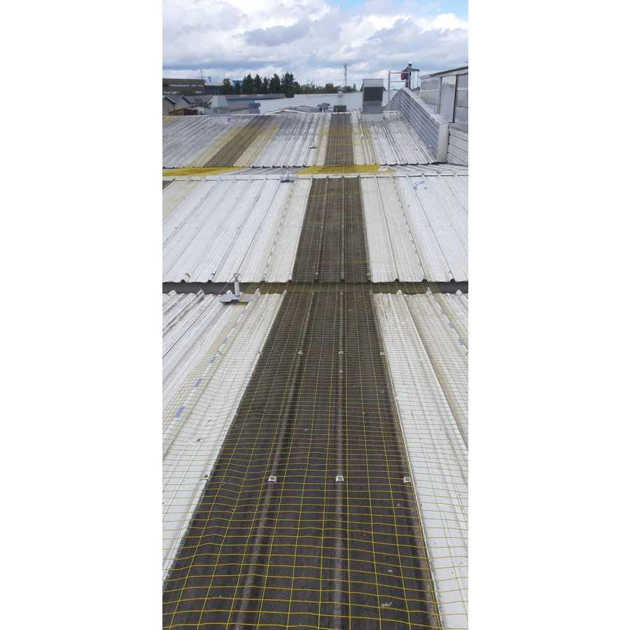 Le filet rectangulaire électro-soudé, galvanisé et plastifié (couleur jaune) avec 4 fils aux extrémités longitudinales est conçu comme une protection de lucarne pour les couvertures industrielles.