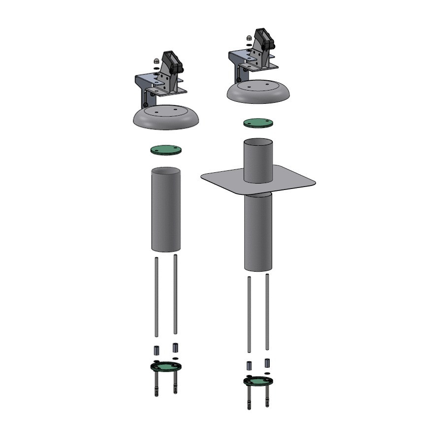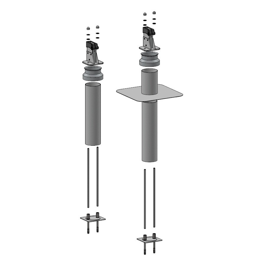 La conception du potelet permet une standardisation grâce à l'utilisation de la collerette réglable en hauteur.