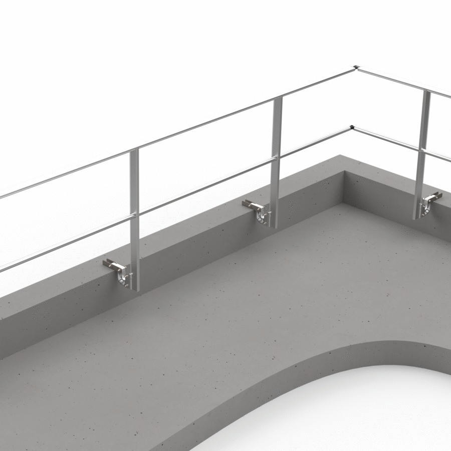 Garde-corps fastguard fixation sur sabot Z ECO montant incliné 25° acrotère non isolé avec sous lisse | |