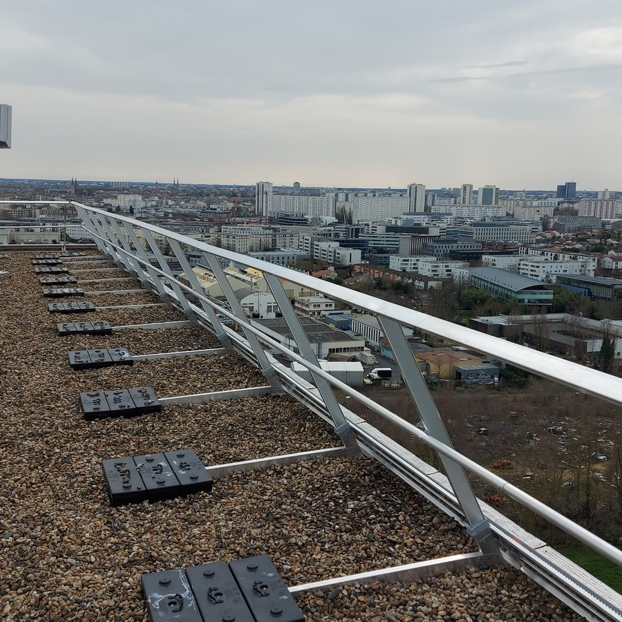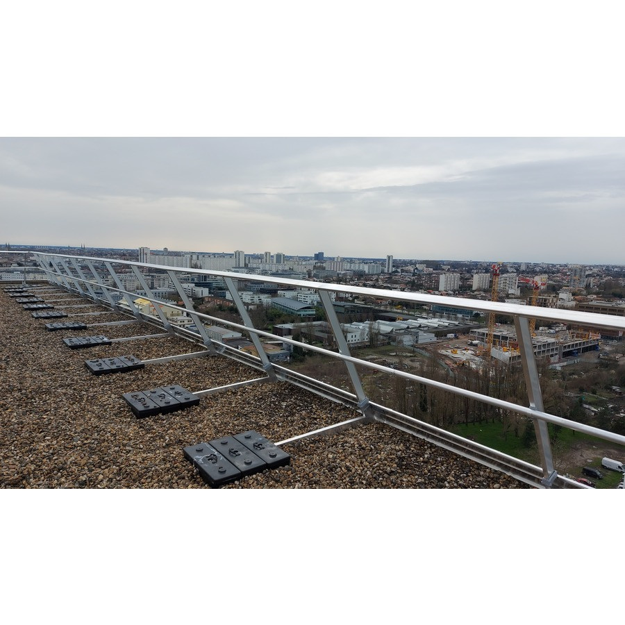 Le garde-corps autoportant FASTGUARD permet la mise en sécurité des terrasses lorsqu'il est techniquement impossible de se fixer sur l'acrotère ou sur la dalle béton. Il évite toute intervention de perçage en toiture, préservant ainsi l'étanchéité.