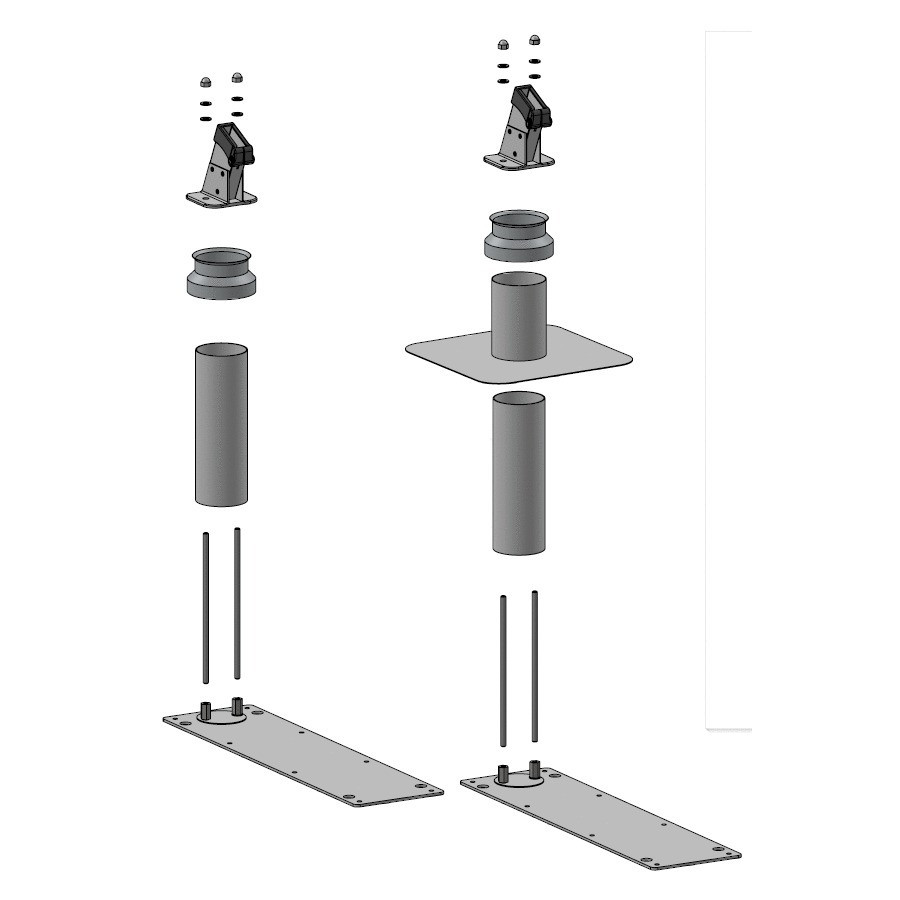 La conception du potelet permet une standardisation grâce à l'utilisation de la collerette réglable en hauteur.