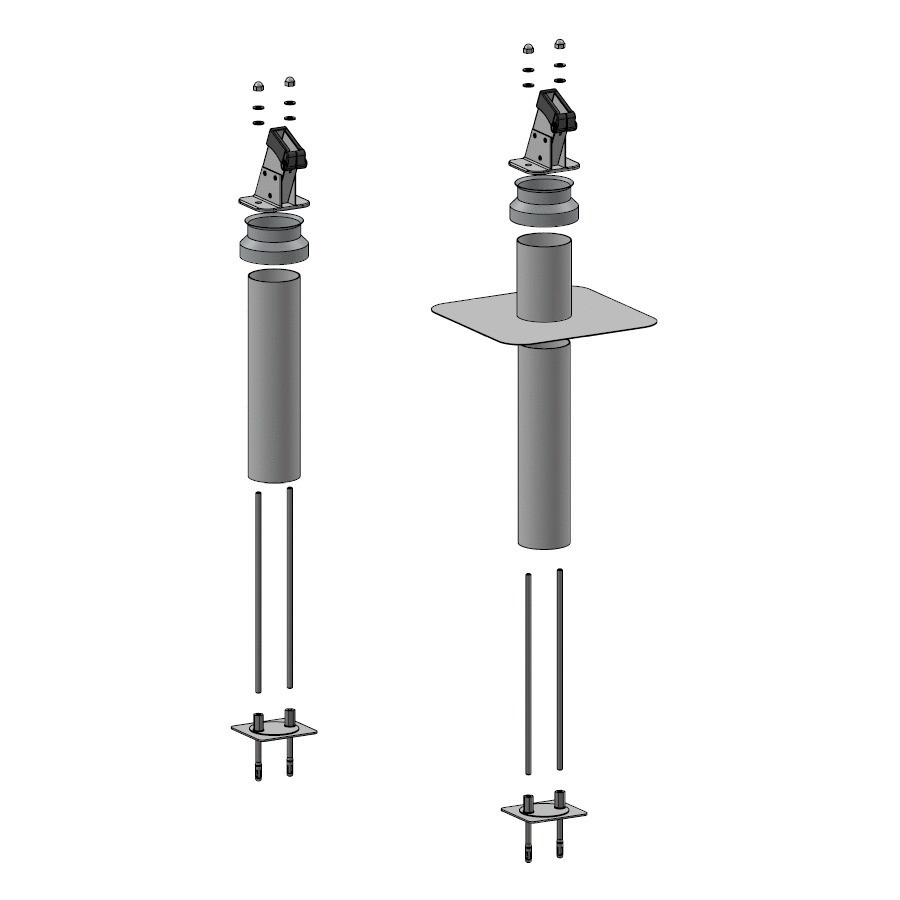 La conception du potelet permet une standardisation grâce à l'utilisation de la collerette réglable en hauteur.