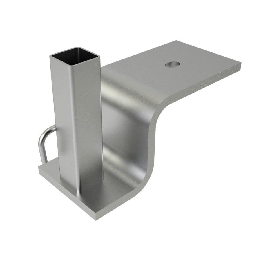 Fixation pour acrotère béton : 1 seul trou de fixation pour fixer le Z sur acrotère béton à l'aide d'une cheville mécanique ou chimique M10 adaptée au support.