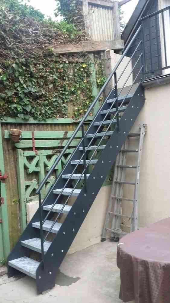 Les spécialistes de la hauteur de L'Echelle Européenne de Caen (14) ont fabriqué et installé cet escalier extérieur avec structure et marches perforées en acier galvanisé, pour le compte d'un particul...