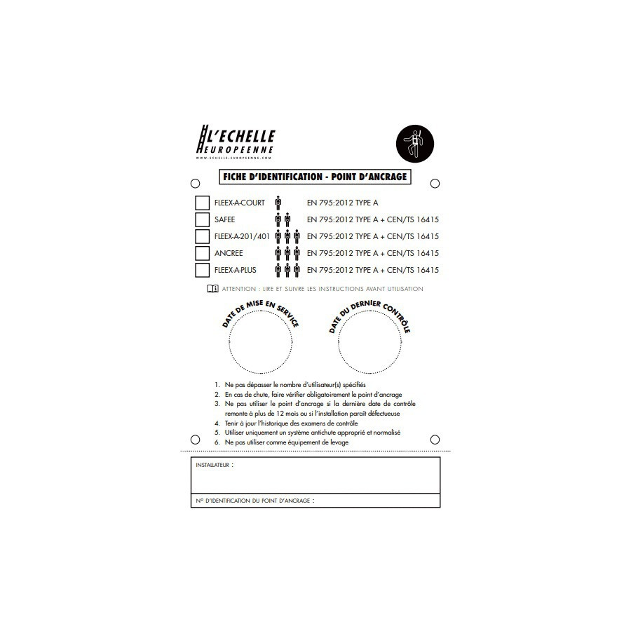 Panneau d'identification pour point d'ancrage singulier