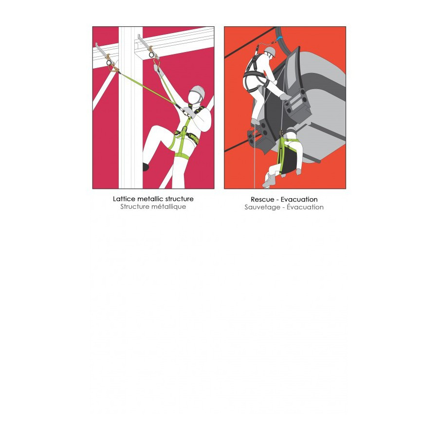 Chaque extrémité est terminée par une boucle sertie avec cosse métallique, garantissant un maintien optimal et une connexion sécurisée aux dispositifs antichute.