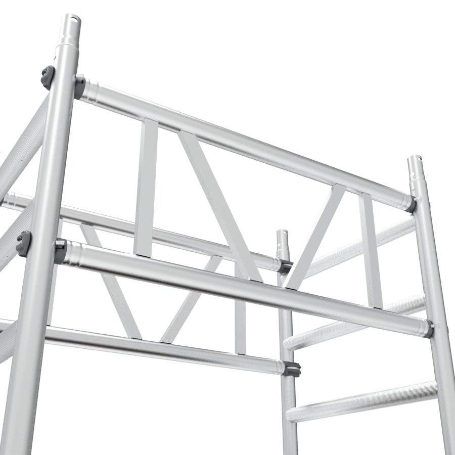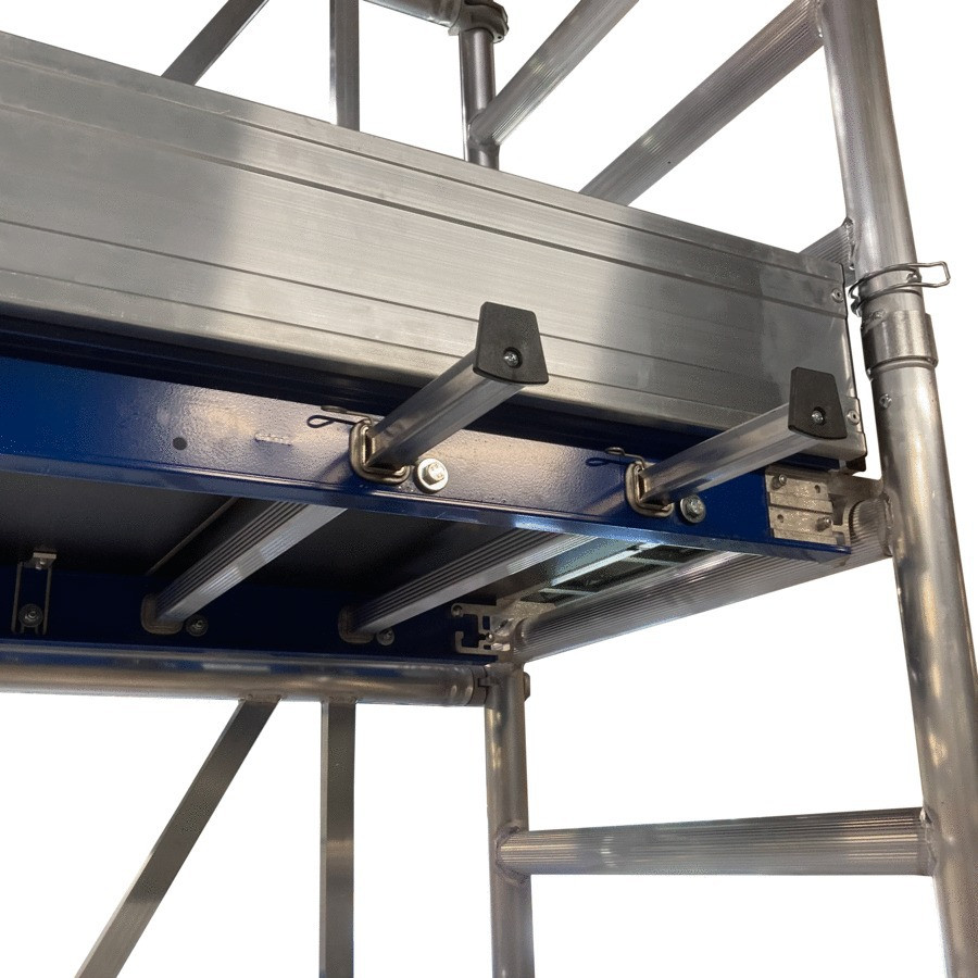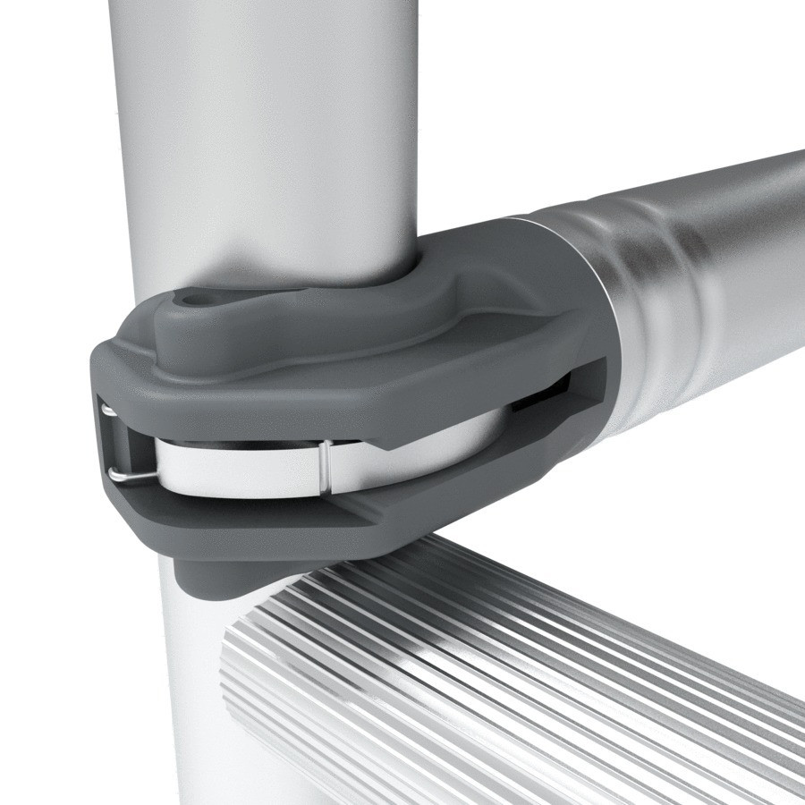 Sa conception astucieuse permet un montage en sécurité intuitif : stabilisateurs Easy-Lock®, bras de suspension intégrés au plancher et garde-corps monoblocs.