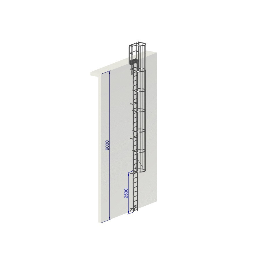 Échelle à crinoline hauteur 9 000 mm EN ISO 14122-4