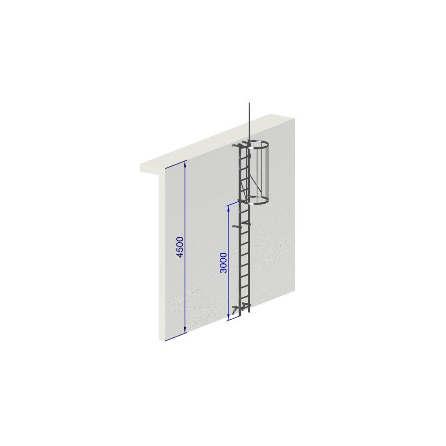Échelle à crinoline hauteur 4500 mm avec crosse de sortie escamotable NF E85-016