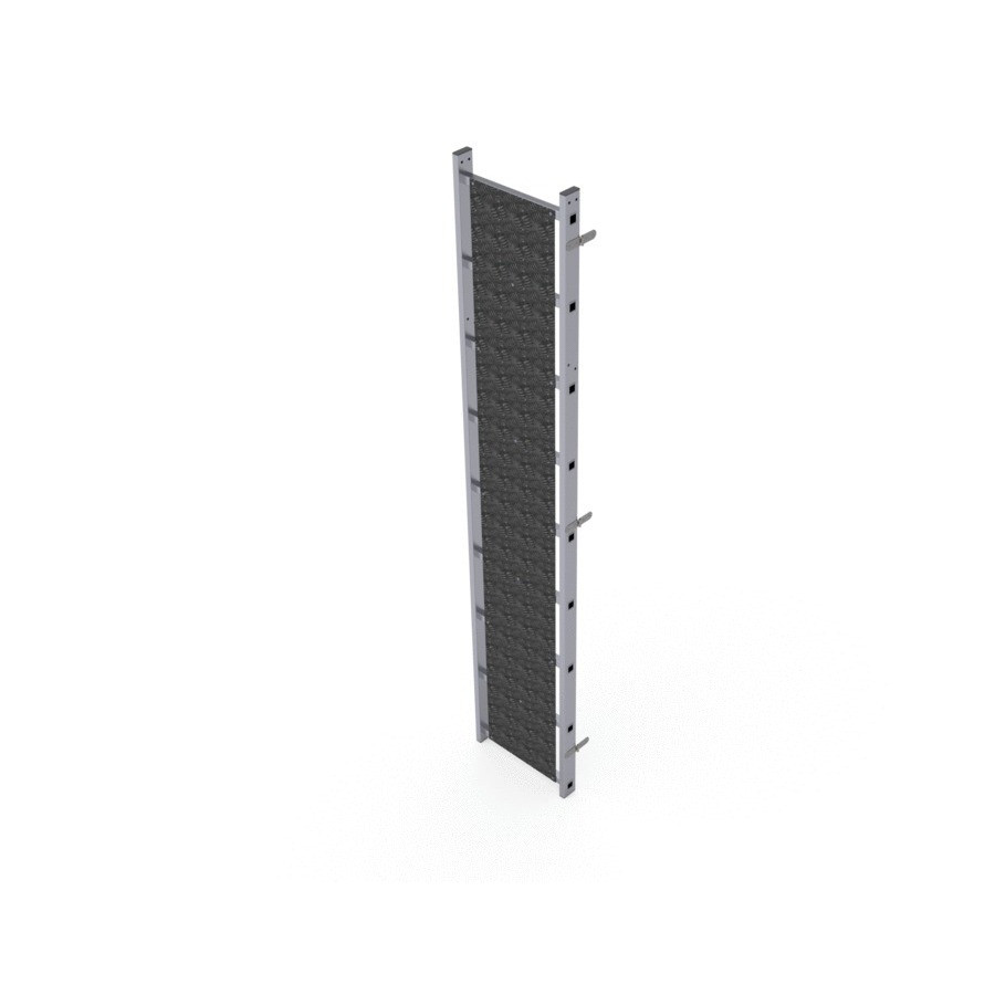 Accessoire de fixation d'échelle à crinoline sur un bardage acier.Étanchéité préservée par l'utilisation de rondelles en néoprène et de bande d'étanchéité.Espacement maximal entre plaques avec un mini...