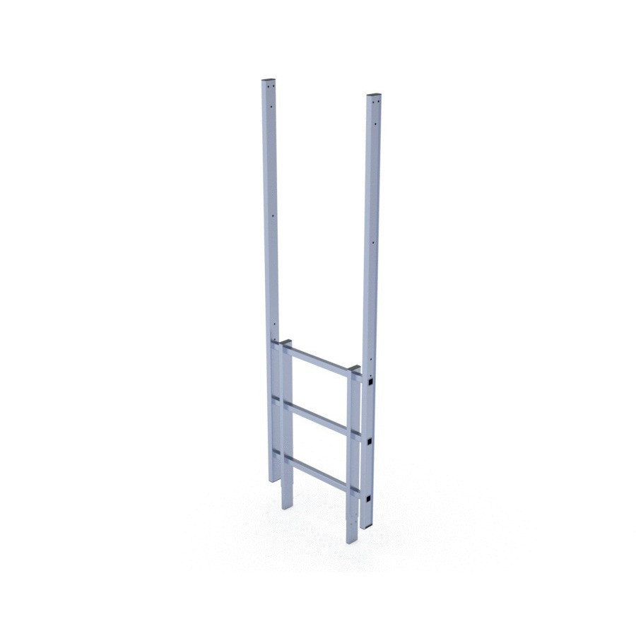 Sortie droite pour échelle fixe.Fixation par bridage sur les montants de l'échelle.