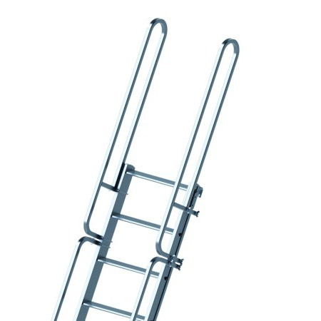 Rampe de sortie en aluminium compatible avec les échelles à marches l'Echelle Européenne avec des marches de profondeur 80mm, 130mm et 200mm.