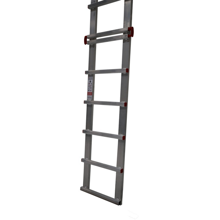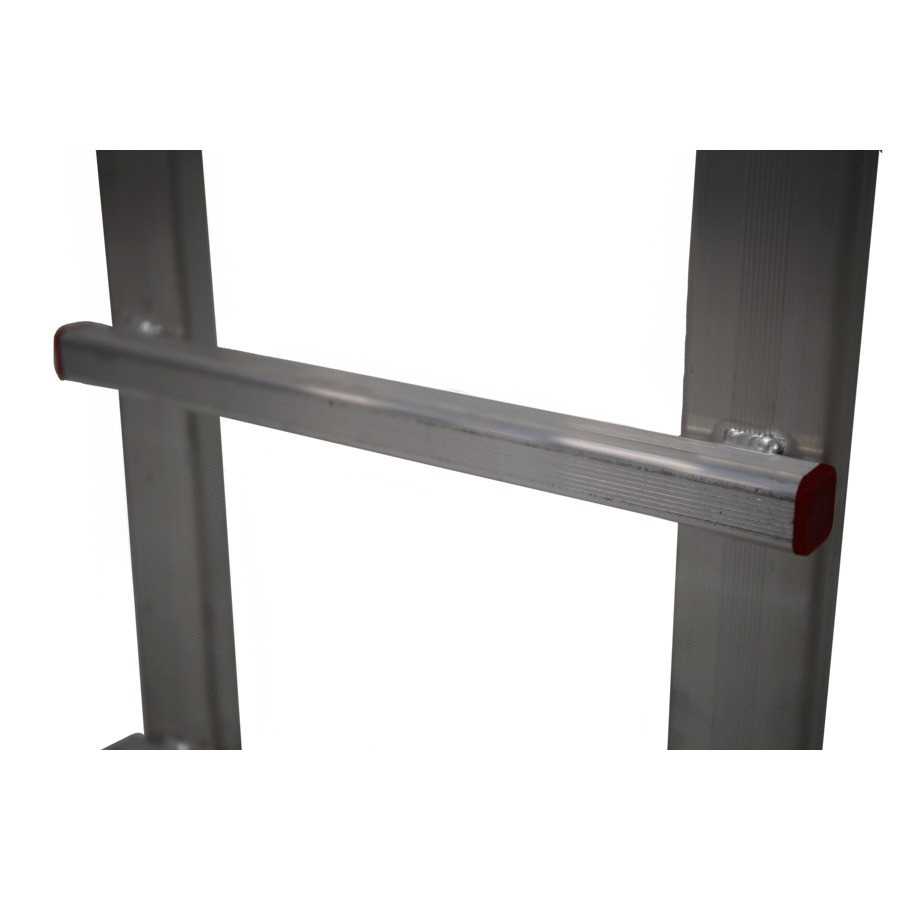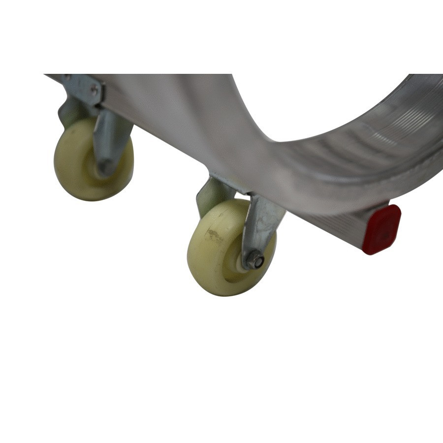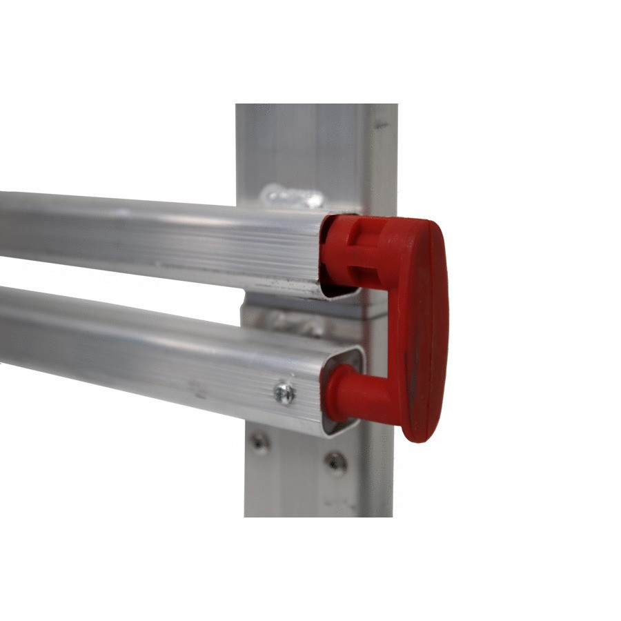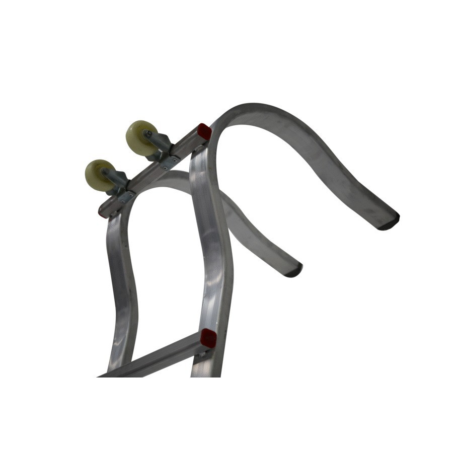 Ensuite, retournez l'échelle et vérifiez que les crochets roulette soient bien fixés en tirant l'échelle vers vous. D'une longueur de 2,30m, cette échelle de couvreur possède un système de connexion simple pour ajouter des éléments de 3 m ou 1,30 m.