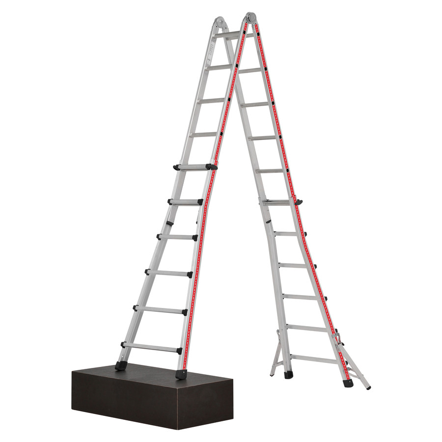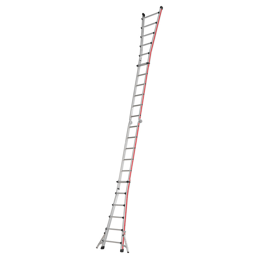 Modulable, l'échelle s'adapte à de nombreuses situations de travail (échelle simple, échelle déployée, échelle double, échelle double en dénivelé).