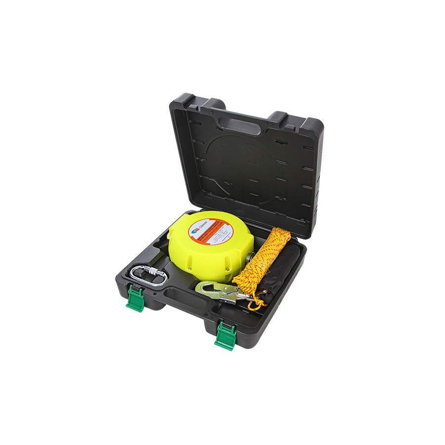 Les enrouleurs rétractables 10M et 20M sont des dispositifs équipés pour utilisation verticale et horizontale d'un freinage automatique par inertie. Ils permettent à l'utilisateur de se déplacer sur une large zone de travail, en offrant une protection contre les chutes de hauteur.