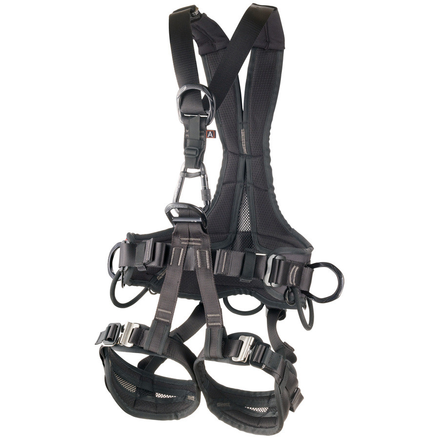 Harnais complet pour l'accès sur corde, équipé d'un dos ergonomique novateur qui enveloppe le dos et les épaules de l'utilisateur. Ventilation dos et des cuisses.